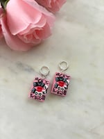 Polymer clay, hypoallergenic sterling silver-plated hoop huggies.