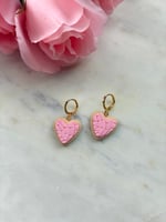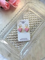 Polymer clay, hypoallergenic 18k gold plated brass hoop huggies.