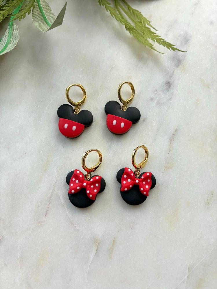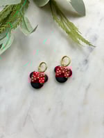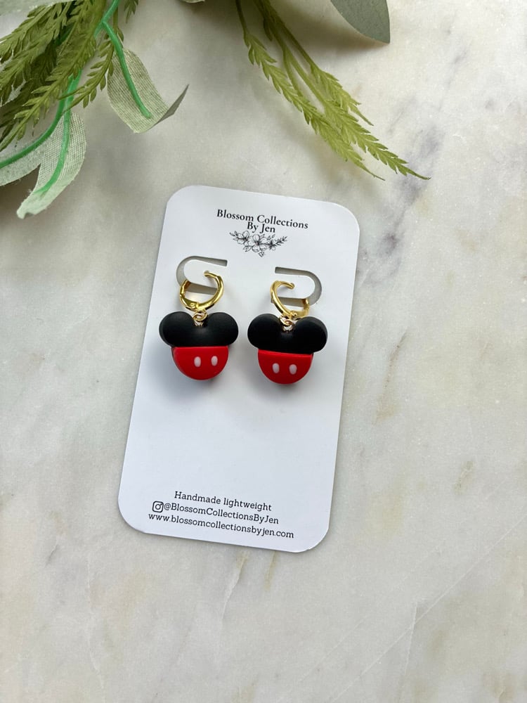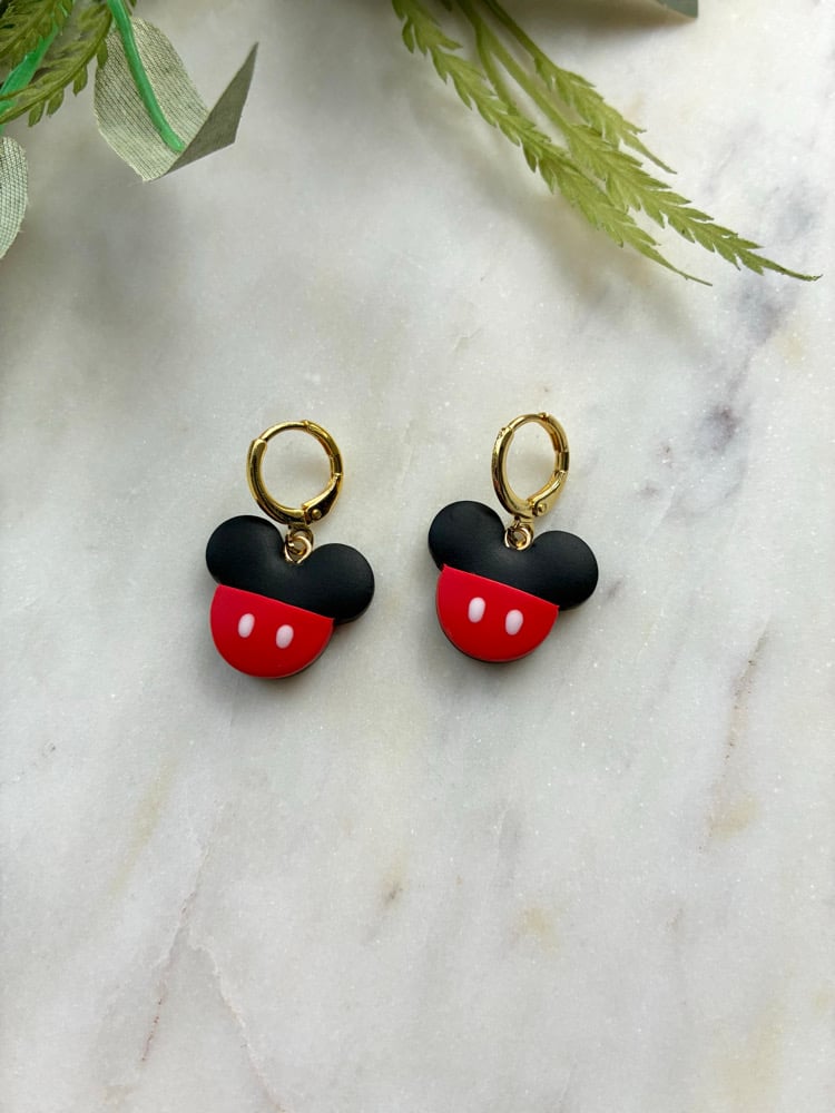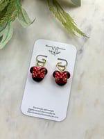 Polymer clay, hypoallergenic 18k gold plated brass hoop huggies.