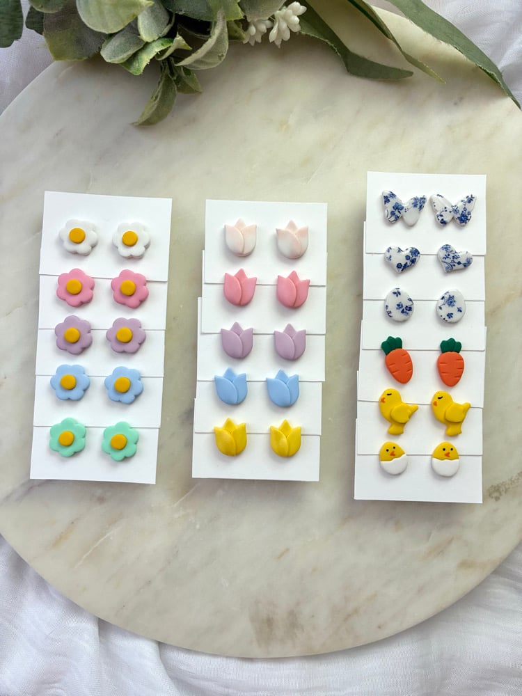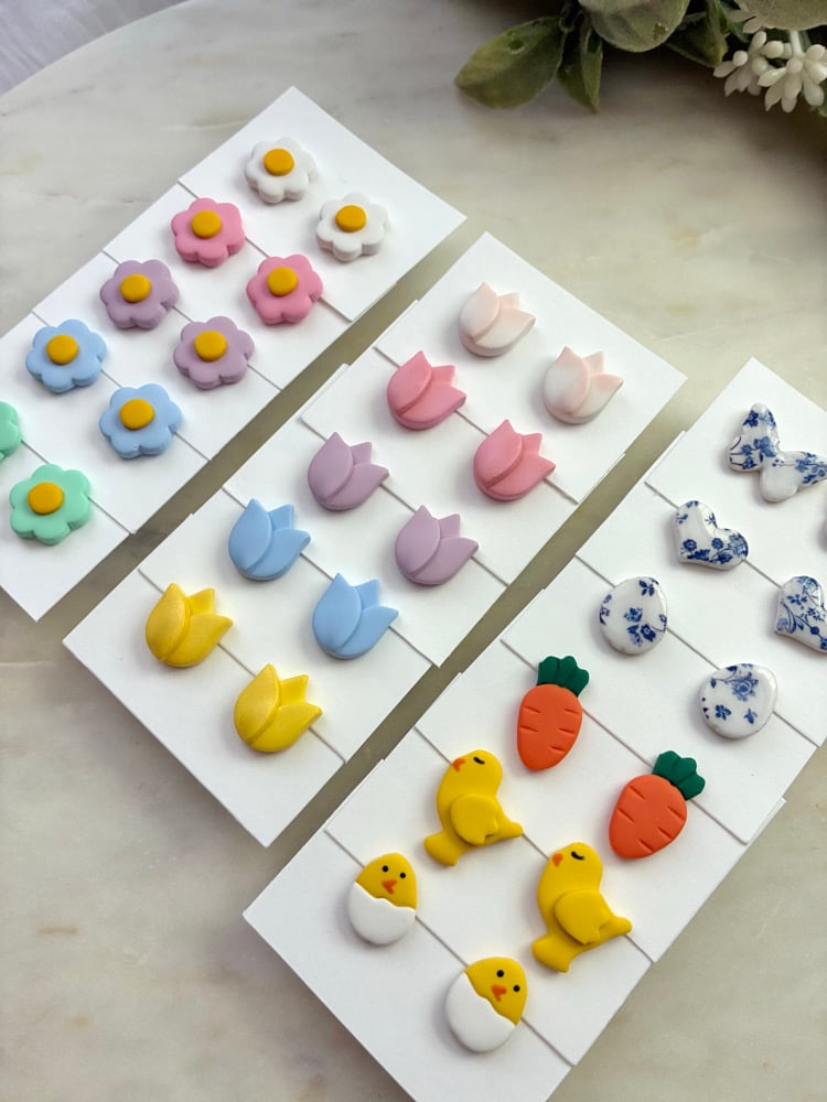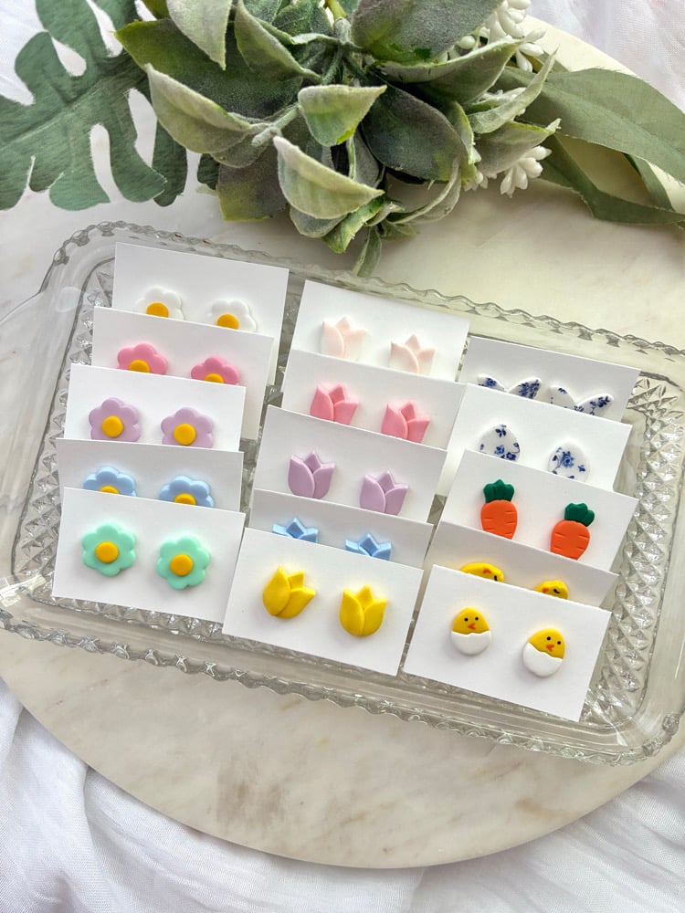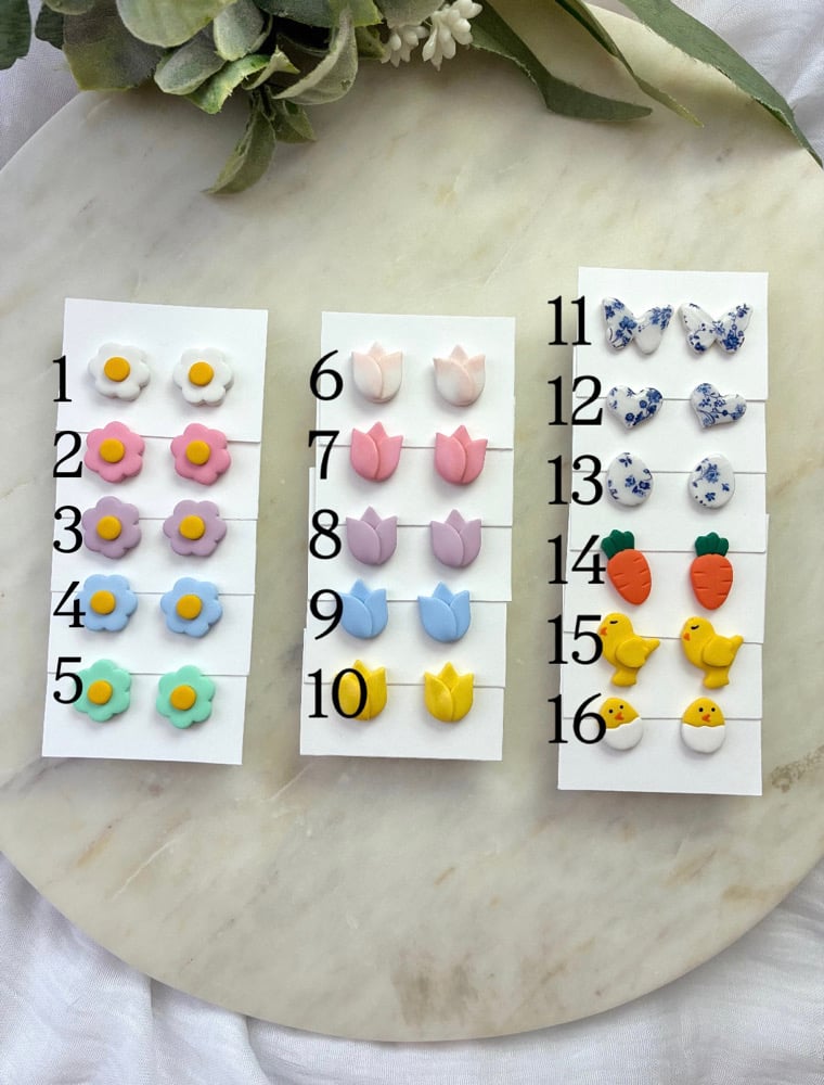 Polymer clay, hypoallergenic post stainless steel.